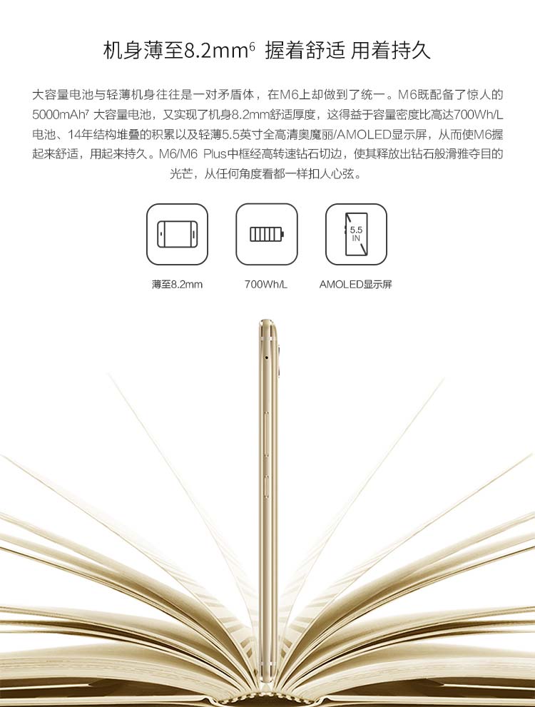 M6既配備了驚人的大容量電池,又實現(xiàn)了機身8.2MM的舒適厚度,打破了大容量電池與輕薄機身矛盾體的傳統(tǒng)。