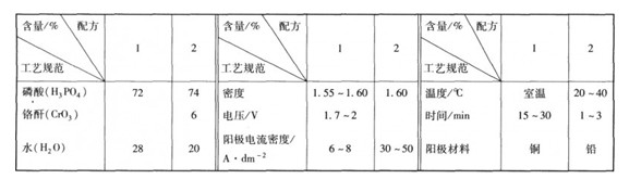 銅及其合金的電解拋光,廣泛采用磷酸電解液。其工藝規范列于表2—4—4。